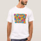 Hier ist mein Gemälde namens "Patchwork", das auf einem T - Shirt gemacht wurde. Es wird Ihnen eine Explosion von Farbe und Muster geben.