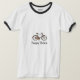 Ride en style avec ce T-shirt unique. Il présente des oeuvres minimalistes de la ligne de vélo, encadrées par un arrière - plan transparent, mises en valeur par "Happy Rides" dans une police sans-serif contemporaine et une palette harmonieuse de couleurs de boho, parfaite pour l'esprit libre moderne.
