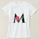 T-shirt Monogramme Lettre initiale M en noir avec rose ros