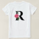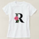 T-shirt Monogramme Lettre initiale R en noir avec rose ros