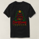 Ce t-shirt noir présente un design festif avec le texte "Ne soyez pas fâché, c'est Noël" disposé dans le contour d'un sapin de Noël surmonté d'une étoile jaune. Les mots "prickly" et "Christmas" sont en rouge, tandis que le reste est en vert. Des feuilles creux et une bordure jaune décorative complètent le thème des vacances.
