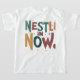 Ce design de t-shirt confortable comporte le texte "Niché dans maintenant" niché à l'intérieur d'une illustration cosy du nid d'oiseau. Le texte lui-même utilise des couleurs chaudes et accueillantes pour créer un sentiment de détente et de confort.