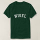 Nigel ! Votre nom est-il Nigel ? Ou avez-vous un mari, un ami, un membre de la famille masculin ou un mâle Nigel appelé par ami ? Si oui, cette chemise de "bannière" est exactement le cadeau que vous recherchez ! Les caractéristiques de conception "Nigel" dans le lettrage blanc arqué à travers le coffre dans la police classique d'université.