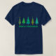 Un design géométrique moderne de cinq sapins en jaune turquoise, turquoise et doré. Il est écrit "Joyeux Noël" en texte vert assorti.