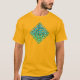 Un T-shirt Raglan à manches longues en toile avec un diamant bleu-vert celtique à noeud bleu contre un arrière - plan orange.