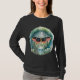Un délicat papillon rose et brun contre l'arrière - plan d'une mystérieuse forêt bleue et verte.