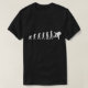T-shirt montrant une chronologie d'évolution avec une silhouette de lancement sur un T-shirt foncé.