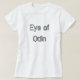 Oeil d'Odin texte avec le noir coloré sur un t-shirt blanc. Vous pouvez customiser ce t-shirt pour lui donner un look unique, vous pouvez changer la police de texte et la couleur, le type de t-shirt et ajouter plus de texte ou de modifier le texte.