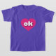 Ce t-shirt est doté d'un coeur rose chaud et vibrant contenant les lettres coques inférieures arrondies, blanches et audacieuses ok, une abréviation ludique pour Oklahoma, l'état le plus tôt.