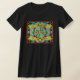 Des motifs géométriques vibrants remplissent l'image, avec des cercles, des triangles et des tourbillons dans un kaléidoscope de couleurs, dont le bleu, le vert, le jaune et le rouge. Le design complexe crée un sentiment de symétrie et d'équilibre.