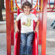 Un mignon ours en peluche jaune assis avec un ballon. Ce design semble vraiment efficace sur ce T-shirt garçon
