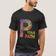 Un design ludique et inspirant de t-shirt avec le texte "P Your Path" dans un affichage vibrant de couleurs. Le design encourage l'individualité et la prise en charge de son destin. La lettre "P" est le point central, conçue de manière audacieuse et créative qui symbolise le pavage de son propre chemin. Cela pourrait impliquer : une forme de flèche pour la tige "P", pointant vers le haut et vers l'avant. Une variété de textures et de motifs incorporés dans la lettre, représentant différents choix et expériences. Un chemin ou une route qui sort du sommet du "P", menant à l'inconnu. Le texte "Votre Chemin" est écrit dans une police complémentaire, également en multicolore, ajoutant de l'accent au message. t-shirt design inspirationnel, motivationnel, auto-détermination multicolore, coloré audacieux et créatif design pour la lettre "P" (forme de flèche, textures, chemin) police complémentaire pour l'individualité "Votre Chemin", prendre en charge, voyage personnel