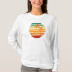 Soleil rétro coloré avec une silhouette de palmier orange.