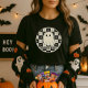 Sweet rencontre éffrayant — un fantôme gai est assis sur un motif de damier au style "Éffrayant mignon". Idéal pour les amateurs de douces ambiances d'Halloween, de mode esthétique ou de saison. | ・ 𝐓 𝐡 ̳" ̳ ̳ Vous êtes invités à ajouter votre propre texte unique ou à vous sentir libre d'ajouter votre propre touche. 𝑴 𝒐 𝒓 𝒆 𝒋 𝒐 𝒚 éffrayant *** chemise fantôme | tee-shirt à damier fantôme mignon | Chemise esthétique Halloween | mignon | chemise motif fantôme |
