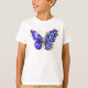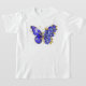 Bijoux, bleu, saphir, papillon aux fleurs pétillantes avec aile décorée de bleu, fleurs précieuses avec feuilles d'or sur arrière - plan blanc.