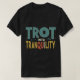 Le design fantaisiste des t-shirts comporte l'expression "Trot into Tranquility" dans une palette de couleurs apaisantes et multicolores. Le design évoque un sentiment de paix et de voyage, parfait pour l'aventurier équestre.