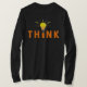 Une conception simple qui indique "pensent" avec une ampoule pointillant la lettre "je" dans jaune et l'orange. Il y a les lignes onduleuses autour de l'ampoule qui pourrait discutablement représenter les cheveux mal peignés d'Albert Einstein.