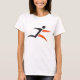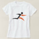Symbole noir et orange d'une personne qui court. Ce design semble vraiment efficace sur ce T-shirt féminin