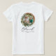 Une couronne de feuillage minime moderne a béni Noël script vacances photo t-shirt de Noël. L'eucalyptus peint à la main, le feuillage minimal et la couronne de rotin rustique moderne donnent à cette carte de vacances une atmosphère luxueuse. Dans les verts, les bruns et les gris.