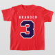 Pièce en t A03 ROUGE d'anniversaire de nombre de sports 3ème. Les grands et audacieux sports d'amusement numérotent et une tache à personnaliser avec un nom fait un grand cadeau pour un petit type tournant trois. Vous pouvez changer la couleur de chemise ou le style de chemise pour un regard différent.