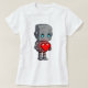 A cute metallic robot with a boxy head and glowing blue eyes, gently holding a bright red pixel-style heart. The smooth gray surfaces contrast beautifully with the vibrant heart glow, creating a warm emotional focus. Clean lines, subtle textures, and a soft cartoon style give this illustration a charming balance between futuristic and adorable, expressing innocence, warmth, and digital love.