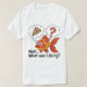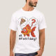 Ce vêtement blanc est orné d'une caricature orangée de grands yeux, apparemment confus. Au-dessus du poisson se trouvent deux bulles de pensée, l'une contenant une tranche de pizza et l'autre un point d'interrogation. Le texte "Attendez... Qu'est-ce que je faisais ?" est imprimé sous le poisson. C'est un design fantaisiste pour les amateurs de pizza et ceux qui ont un sens de l'humour.