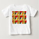 Ce t-shirt de bébé a un design de feuilles qui se répètent pour faire un tas de feuilles dans les tons jaune, rouge, orange et vert.