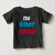 Un texte amusant, coloré et design de coeur avec un texte rouge, bleu et noir ou blanc qui lit My Sister Rocks sur les T-shirts de soeur, robes sans manches, chemises à rouffles, robes à rouffles, sweatshirts casquette, costumes tutu, tee - shirts à manches longues, T-shirts raglan, T-shirts organiques, et autres vêtements parfaits pour faire savoir au monde que vous avez la meilleure soeur!