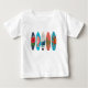 Un design de surf coloré avec différents types d'art de surf. Des illustrations Vintages de poissons tropicaux, plage, fleurs d'hibiscus et palmiers créent un mélange éclectique de planches de surf colorées. Design idéal pour les amateurs de surf, la plage, les cadeaux colorés sur le thème de la plage et la décoration.