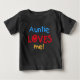 T-shirts Auntie Loves Me, long sleeve tees, raglan T-shirts, bodysuits, football bodysuits, tutu bodysuits, organic bodysuits, sleeveless dresses, ruffle dresses, ruffle shirts, hats, dark-shirts, sweatshirts, pults hoodies, rompers, and more for babies, kids, and toddler lers with a blue, red, and gold text and heart design that reads auntie loves Me, great for auntie's boy or girl !