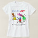Cette chemise mignonne comporte un trio de chiffre coloré enfants de bâton d'aquarelle courant, sautant, et faisant un appui renversé. Le texte ci-dessus indique la "part la JOIE" en rouge bleu et lumineux. Est ci-dessous le texte noir que vous pouvez facilement customiser pour annoncer vos propres affaires connexes par enfant. Perfectionnez pour un préscolaire, école primaire, ou des affaires de soin de jour, notamment. Joyeux et amusement !