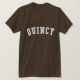 Quincy ! Votre nom est-il Quincy ? Ou avez-vous un mari, un ami, un membre de la famille masculin ou un mâle Quincy appelé par ami ? Si oui, cette chemise de "bannière" est exactement le cadeau que vous recherchez ! Les caractéristiques de conception "Quincy" dans le lettrage blanc arqué à travers le coffre dans la police classique d'université.