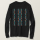 Une combinaison abstraite de formes et de lignes en bleu turquoise, turquoise et rouille crée un motif de tuiles verticales avec des lignes en zigzag, rappelant les styles d'art méditerranéen et amérindien/sud-ouest. Photo ici sur un t-shirt noir à manches longues, avec d'autres styles et couleurs disponibles. Il s'agit d'un look lumineux et élégant, qui peut rehausser vos vêtements décontractés et quotidiens (que ce soit à la maison, en socialisant avec des amis, en jouant au sport ou en faisant des courses en ville). Parce que le design de chemise a une qualité artistique, sophistiquée, et projette un style personnel individualisé, il y a un sentiment d'être "assemblé", ce qui peut être particulièrement motivant pour ceux qui travaillent à distance et/ou passent beaucoup de temps à la maison.