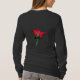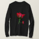 Ce pull à manches longues dispose de deux petits bourgeons de rose rouge exquis sur un arrière - plan noir pur. Un autre rose est à l'arrière.