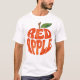 Le design comprend les mots "Pomme rouge" arrangés de façon créative en forme de pomme avec une feuille verte sur le dessus. La typographie est audacieuse et colorée, donnant une impression joyeuse et vibrante.