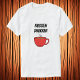 Norwegian Text : Russen drikker kaffe, qui peut se traduire par : Russen boit du café. Obtenez ce t-shirt blanc unique et tendance pour un look unique et différent. Vous pouvez customiser ce t-shirt pour lui donner votre propre look unique. Ein unike russe t-skjorte