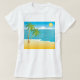 Vue pittoresque sur une plage de palmiers au soleil éclatant. Ce design semble vraiment efficace sur ce T-shirt féminin