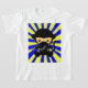 Singe de bande dessinée habillé comme ninja avec un arrière - plan jaune et bleu lumineux. sgb01