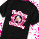 Ce design de fête de patinage est parfait pour une fête de patinage à rouleaux ou un thème d'anniversaire pour les enfants et les adultes de tous âges! Si la fille d'anniversaire ou le garçon d'anniversaire aime le roller skate, ils AImeront ce skate party design! Caractéristiques style rétro "Rolling in My Birthday" citation avec graphique à rouleaux cool avec arc-en-ciel et étoiles qui est amusant et unique. Fun roller skate design pour tout le monde!