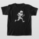 Monochrome skeleton footballer in dynamic stride with ball, high-contrast line art. Striking athletic motif for bold sportswear, Halloween-inspired apparel, and edgy city tees.