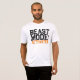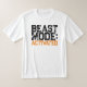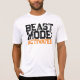 Un t-shirt avec le slogan de motivation "Mode Bête : Activé" en noir et orange en typographie de texte affligé.