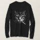 A funny illustration of a cat’s face emerging from a deep black background, gripping a cigarette with an unapologetically calm, almost defiant expression. The design leans into edgy humor and anti-cute aesthetics, blending classic engraving-style linework with modern streetwear attitude. It appeals to lovers of dark humor, rebellious art, and minimalist statement designs that speak without words.