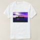 Un arbre simple seul se tient sur une masse minuscule de terre au milieu d'un océan pourpre contre ciel pourpre/rose. Un paysage numérique original intitulé "solitude"