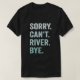 A minimalist graphic design featuring a nature-inspired scene with text Sorry Can't River Bye.