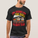 Ce t-shirt noir est muni d'un train de dessins animés avec des bateaux gravés comme voitures, gonflant de la fumée blanche. Le texte "I'M GOING OFF THE RAILS ON A GRAVY TRAIN" est joliment arrangé autour de l'illustration du train en lettres rouges et jaunes. Le design est fantaisiste et sur le thème de la nourriture, suggérant l'indulgence ou la perte de contrôle d'une manière amusante.