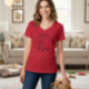 Spread love and dog appreciation with this charming Women's V-Neck T-Shirt! The simple black circular graphic features a loyal dog sitting next to a heart and a paw print. The loving message is a famous quote twist: "ALL YOU NEED IS LOVE, AND A DOG". This vibrant red v-neck is comfortable, stylish, and makes the perfect casual top for walks in the park, dog mom gatherings, or a thoughtful gift for any animal rescue supporter or dog enthusiast.