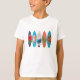 Un design de surf coloré avec différents types d'art de surf. Des illustrations Vintages de poissons tropicaux, plage, fleurs d'hibiscus et palmiers créent un mélange éclectique de planches de surf colorées. Design idéal pour les amateurs de surf, la plage, les cadeaux colorés sur le thème de la plage et la décoration.