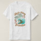 Tee graphique "High Tides Good Vibes" avec surfer sur les vagues contre une scène de plage tropicale.