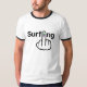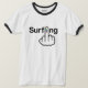 T - Shirt Surfing Drehte ein Surfbrett anstelle eines I in den Finger