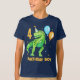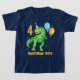 Un design pour une célébration préhistorique pour votre garçon d'anniversaire avec un crayon aquarelle peint à la main heureux, mignon, t rex dinosaure avec ballons de fête et confetti, sur le dos de la chemise est un volcan. Vous pouvez modifier l'âge et le texte de cette conception pour dire ce que vous voulez. Voir l'ensemble de la collection de fêtes de correspondance.